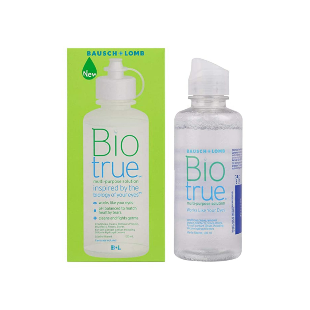 Bio True may easily be used the contact lens solution while cleaning your colourful or clear contact lenses. The solution may be used for cleaning, disinfecting or humidifying your lens. It has been proven to fight germs, clean lenses, and remove irritating protein deposits daily from your soft contact lenses for that fresh lens feeling ever.
