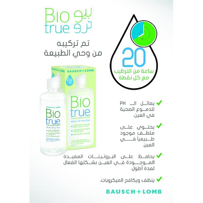 Bio True may easily be used the contact lens solution while cleaning your colourful or clear contact lenses. The solution may be used for cleaning, disinfecting or humidifying your lens. It has been proven to fight germs, clean lenses, and remove irritating protein deposits daily from your soft contact lenses for that fresh lens feeling ever.
